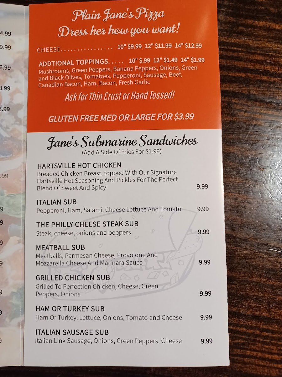 Welcome to Plain Jane's Italian Cuisine, a beloved family-owned gem located in Hartsville, TN. This cozy eatery is renowned for its handmade dough and delightful dishes that capture the essence of authentic Italian cooking. Customers rave about the incredible pizzas, with favorites like the Big John, perfect for feeding a family. The baked ziti and Jane’s Calzone also garner praise for their generous portions and rich flavors.